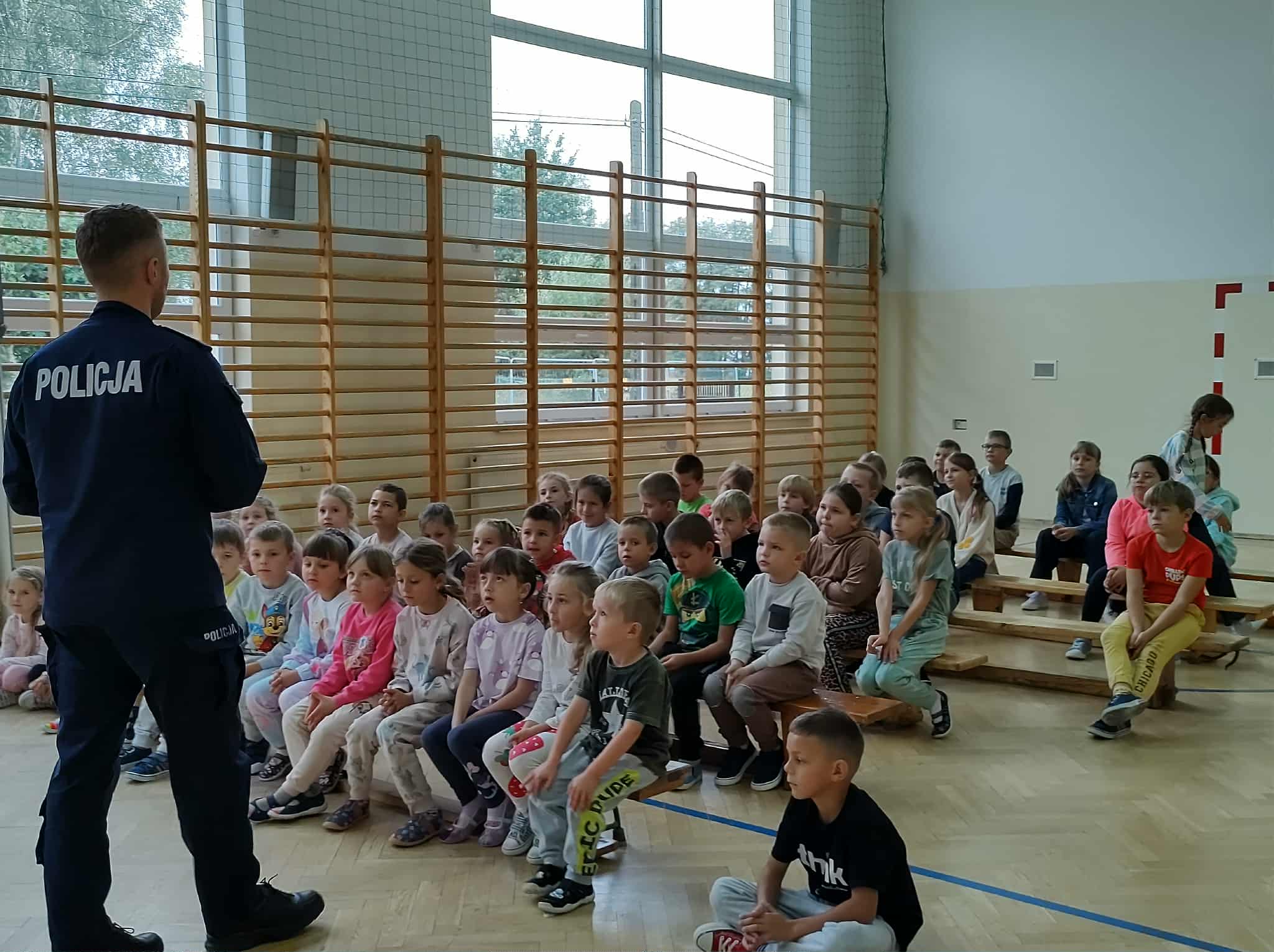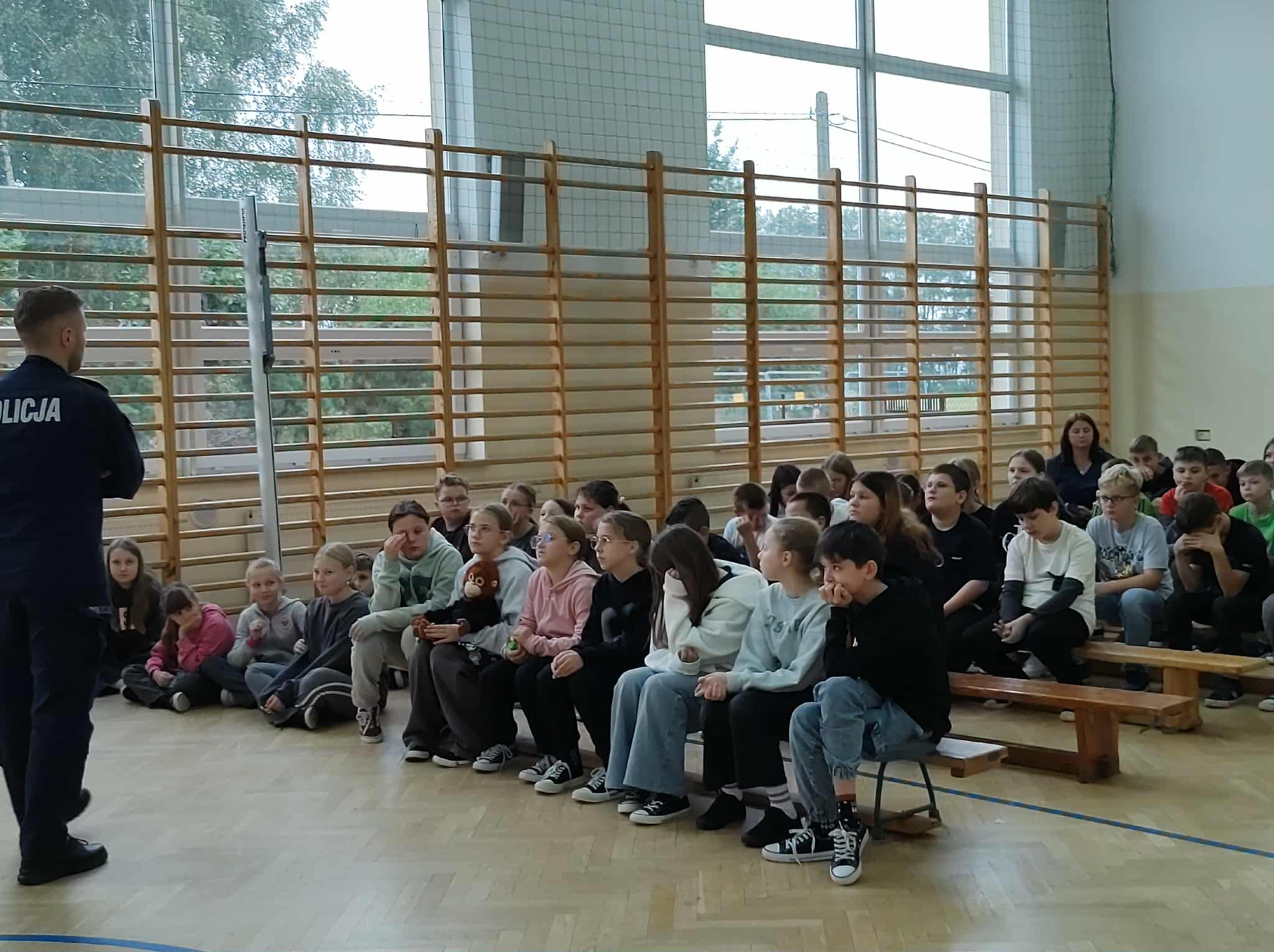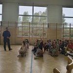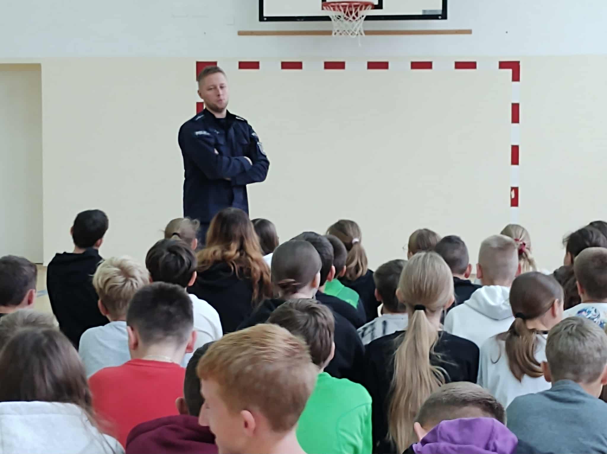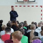 Prelekcja policjanta na temat przemocy i cyberprzemocy.