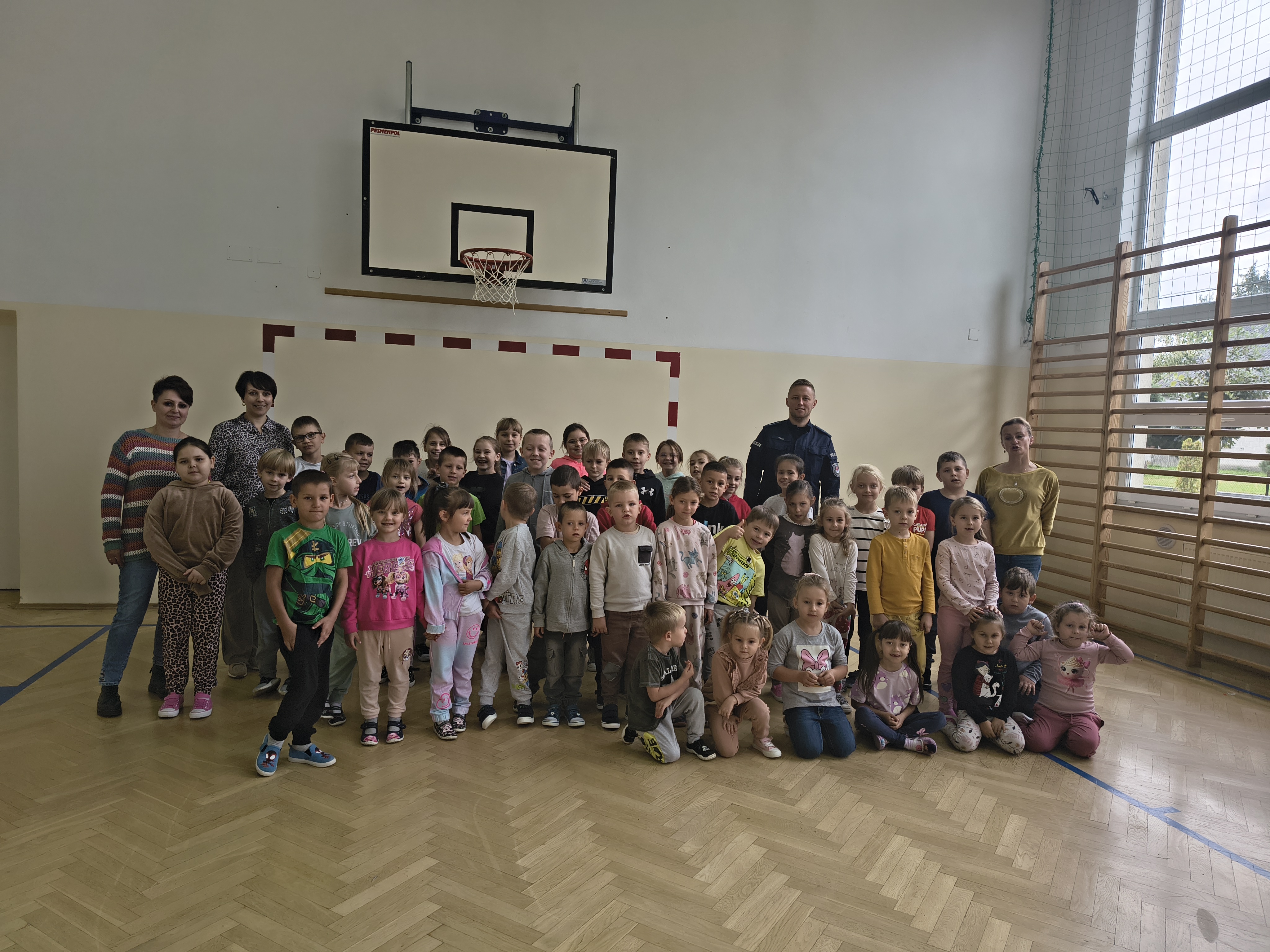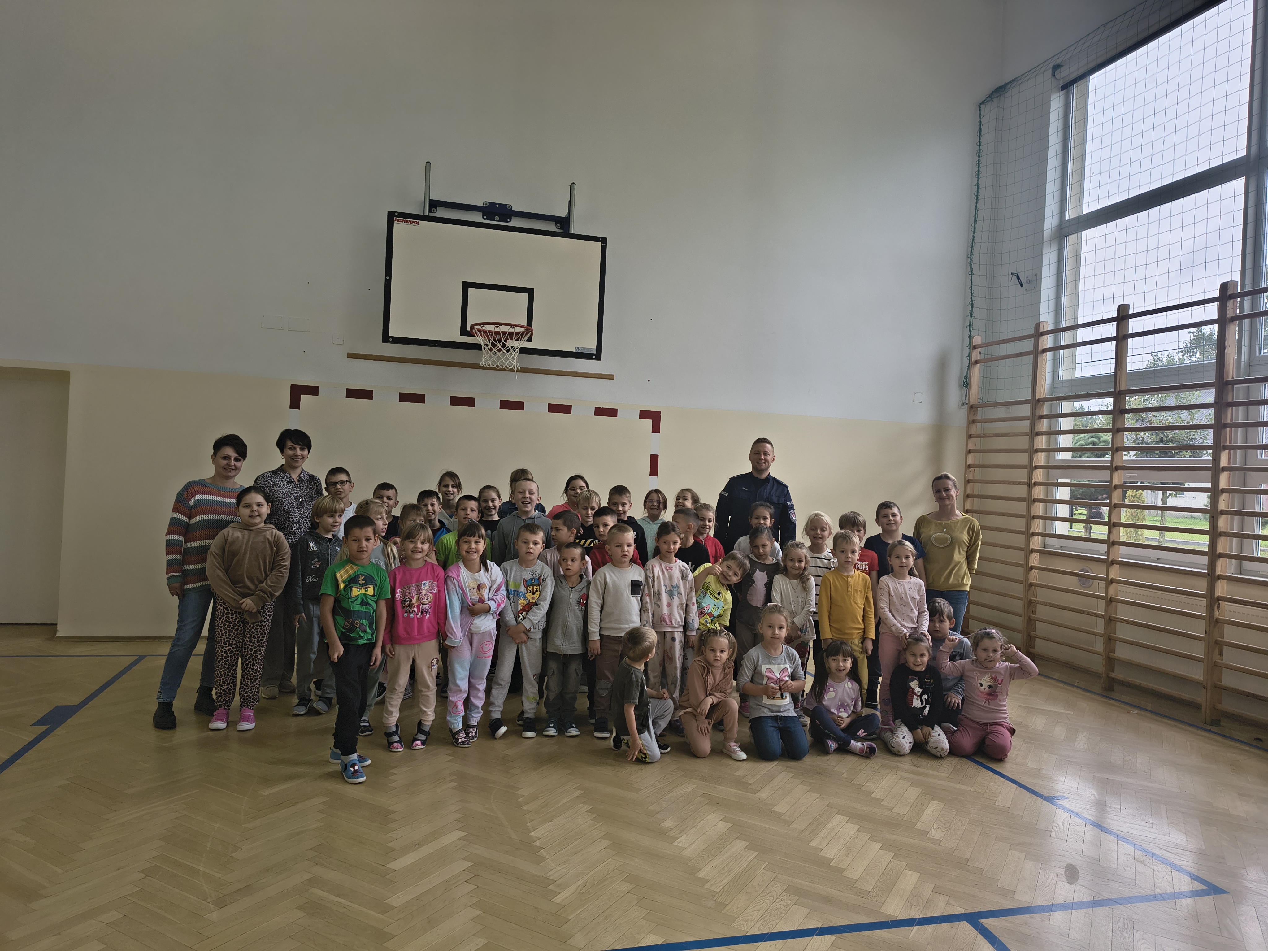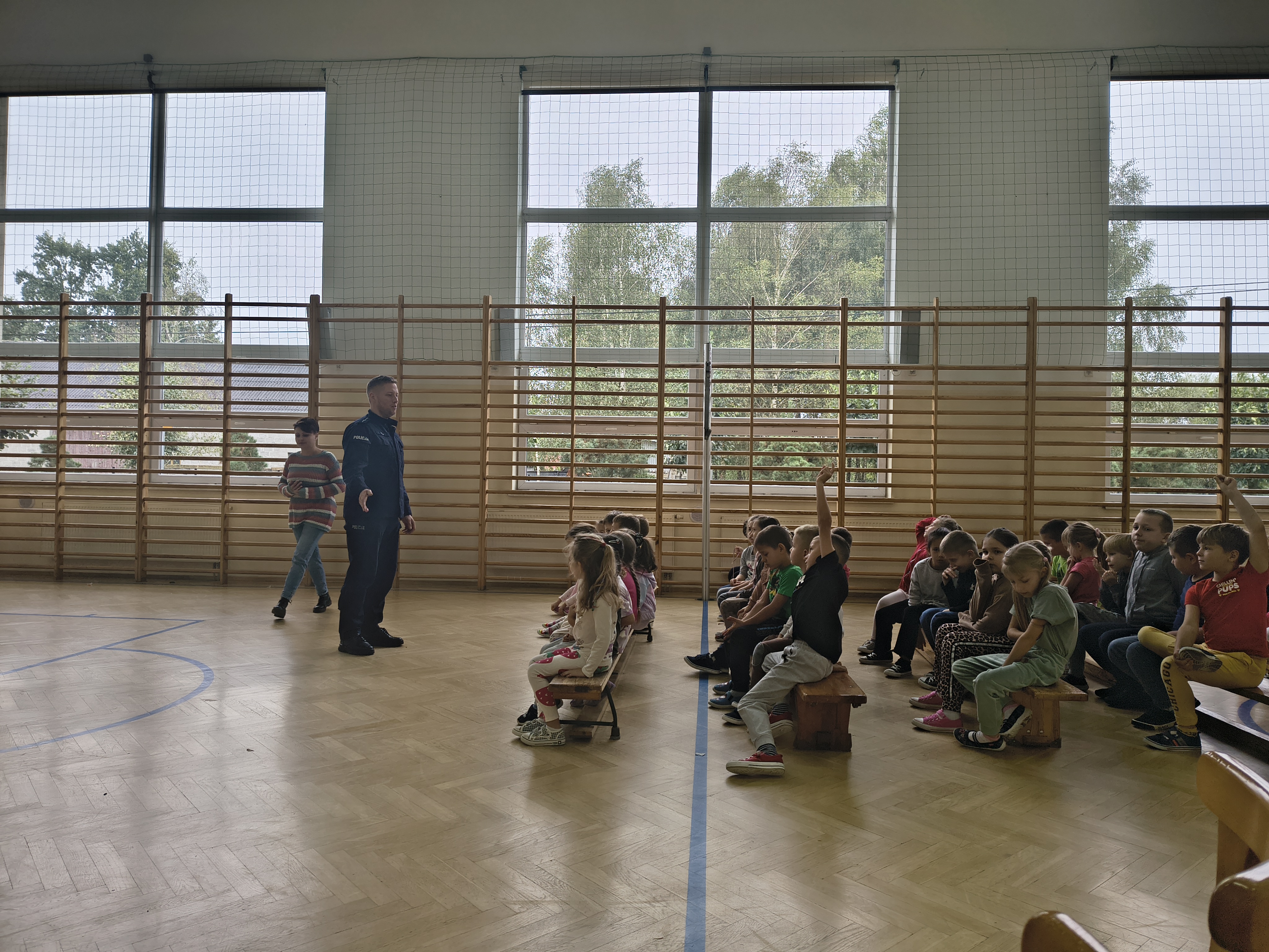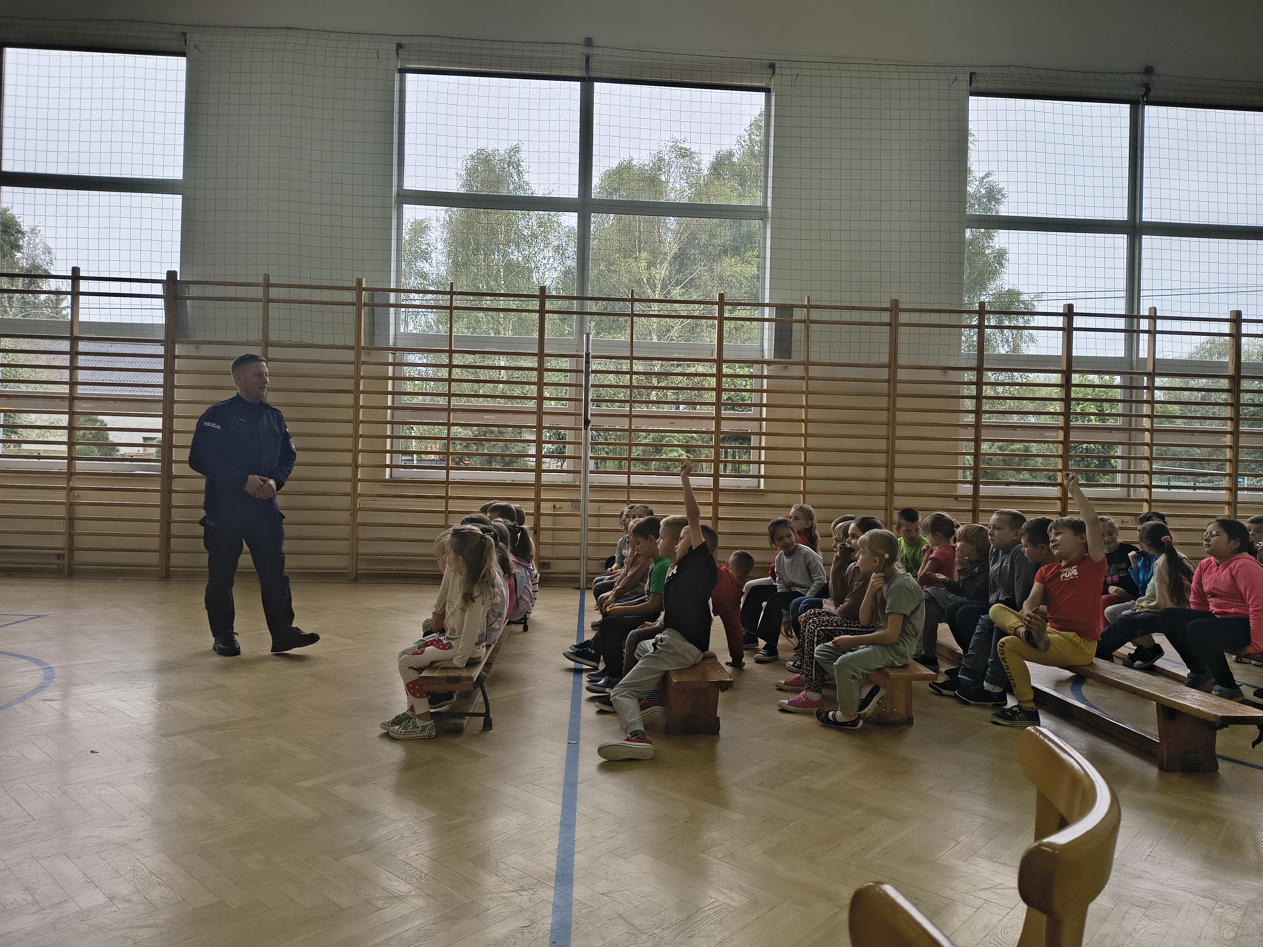 Prelekcja policjanta na temat przemocy i cyberprzemocy.