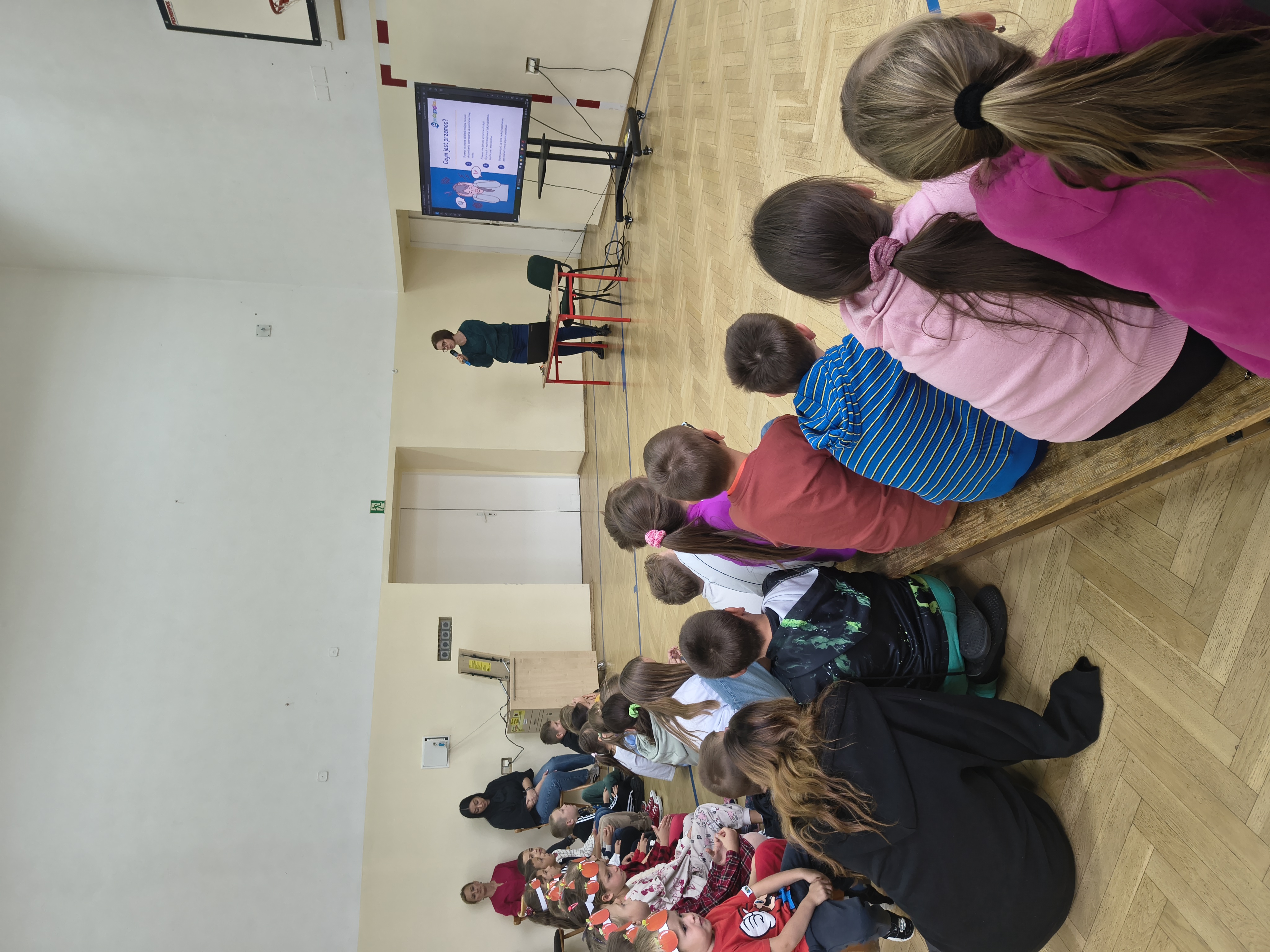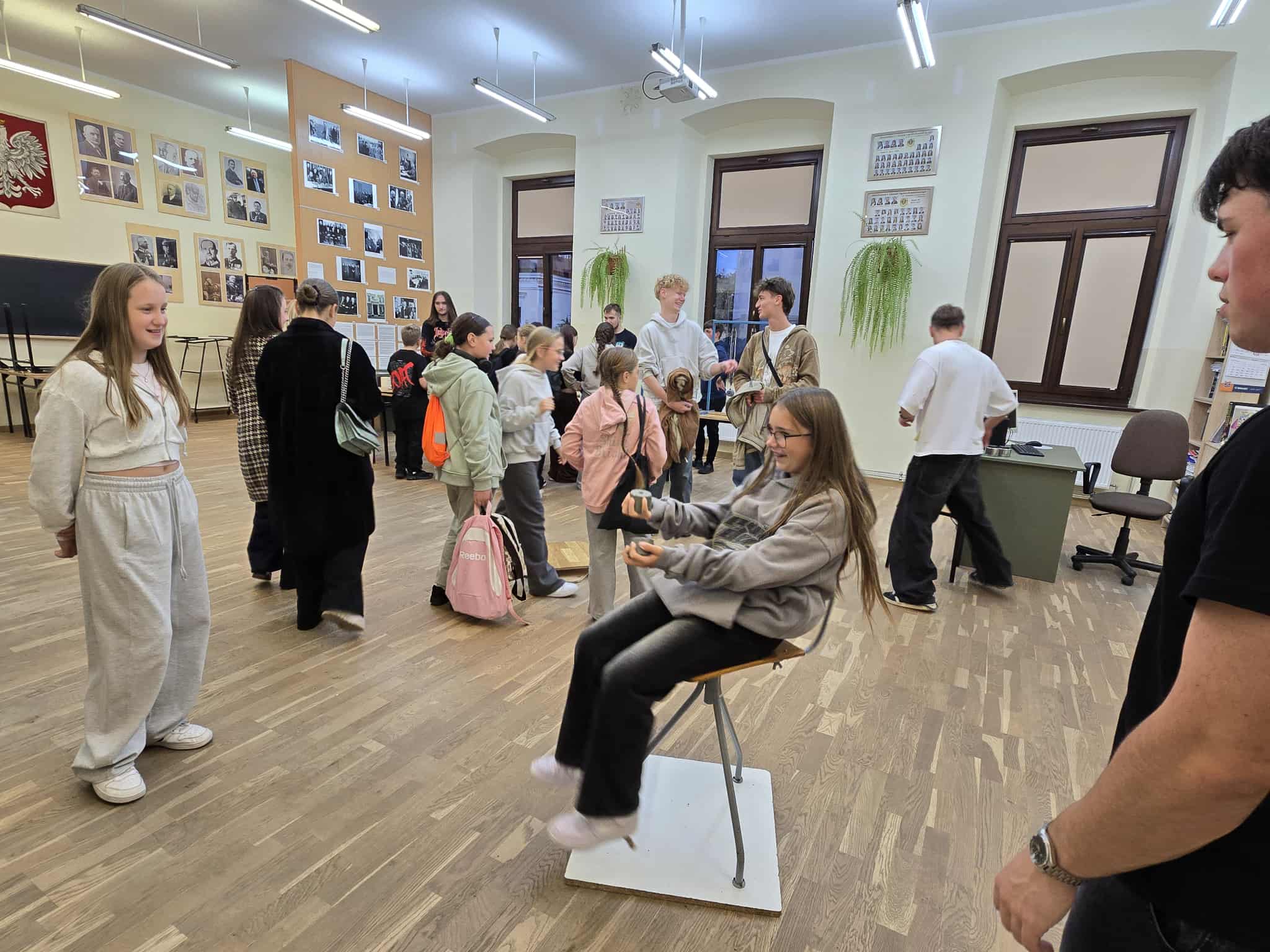 Nie zabrakło również niespodzianki – pani dyrektor przeczytała wszystkim uczniom wiersz Jana Brzechwy, korzystając ze szkolnego radiowęzła. Dzięki temu cała społeczność szkolna mogła jednocześnie uczestniczyć w tym wydarzeniu, a głos poety dotarł do każdej klasy.