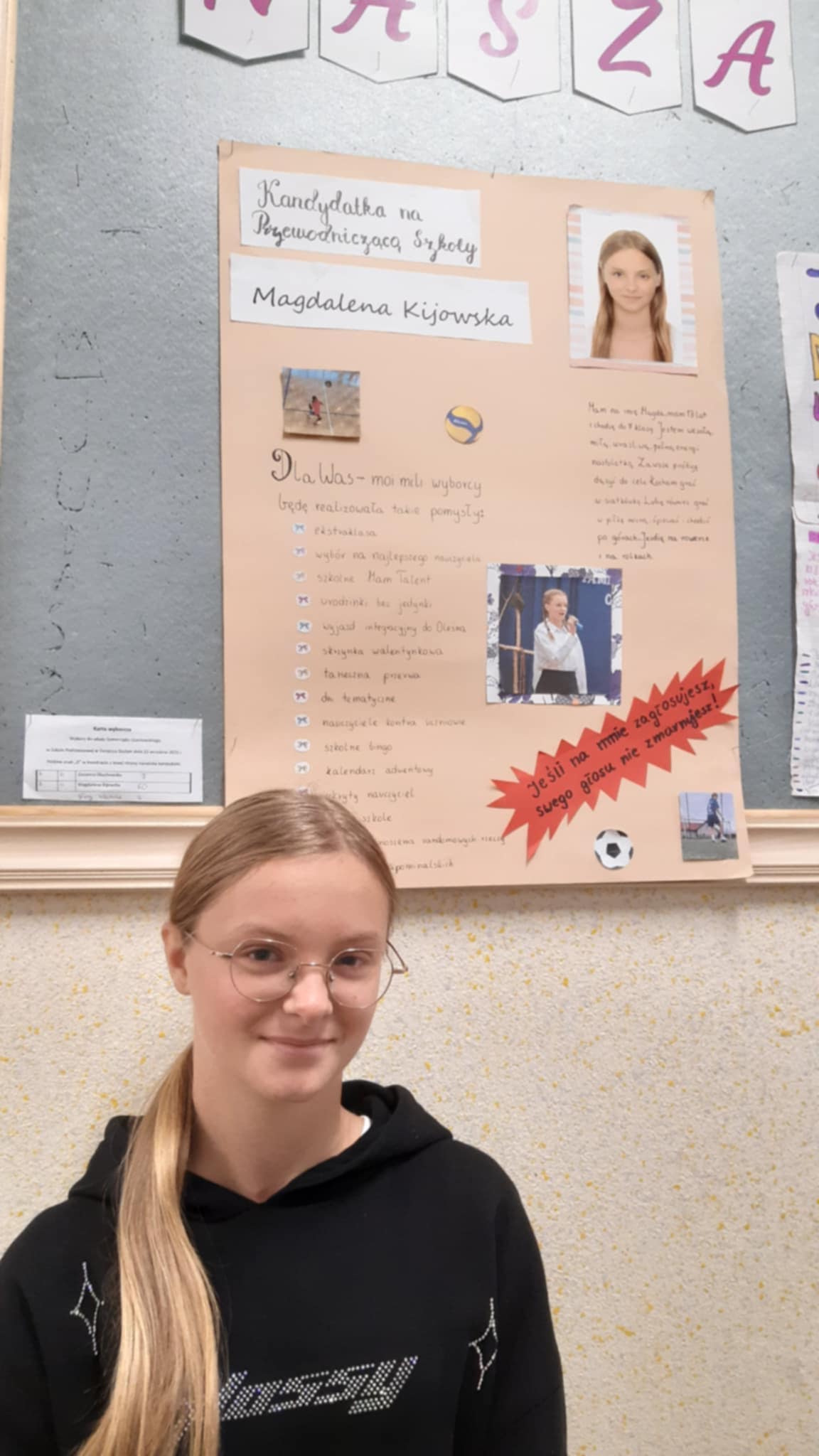22 września uczniowie klas II-VIII wybrali przewodniczącą Samorządu Uczniowskiego. Została nią uczennica klasy VII Magdalena Kijowska. Gratulujemy!