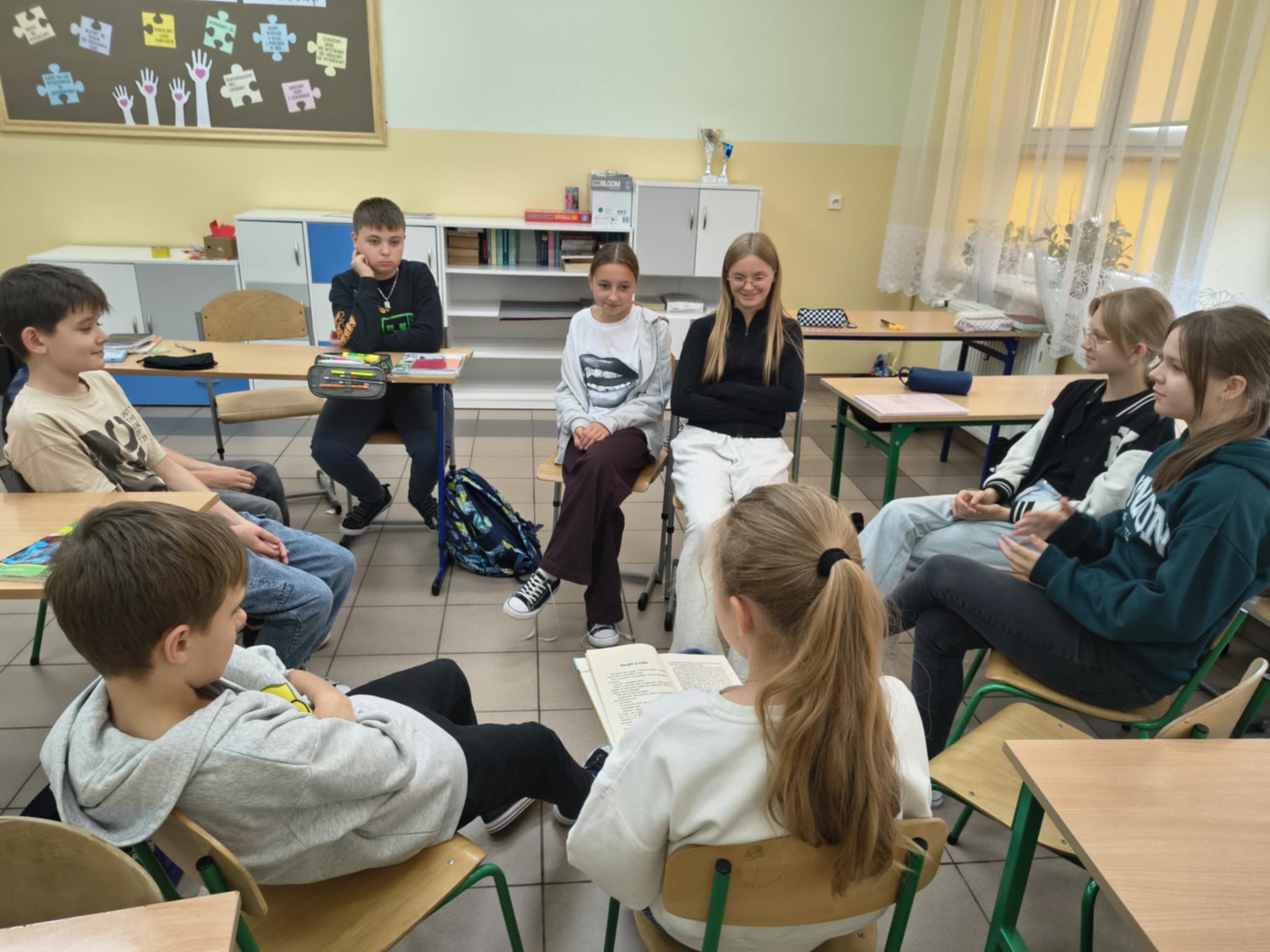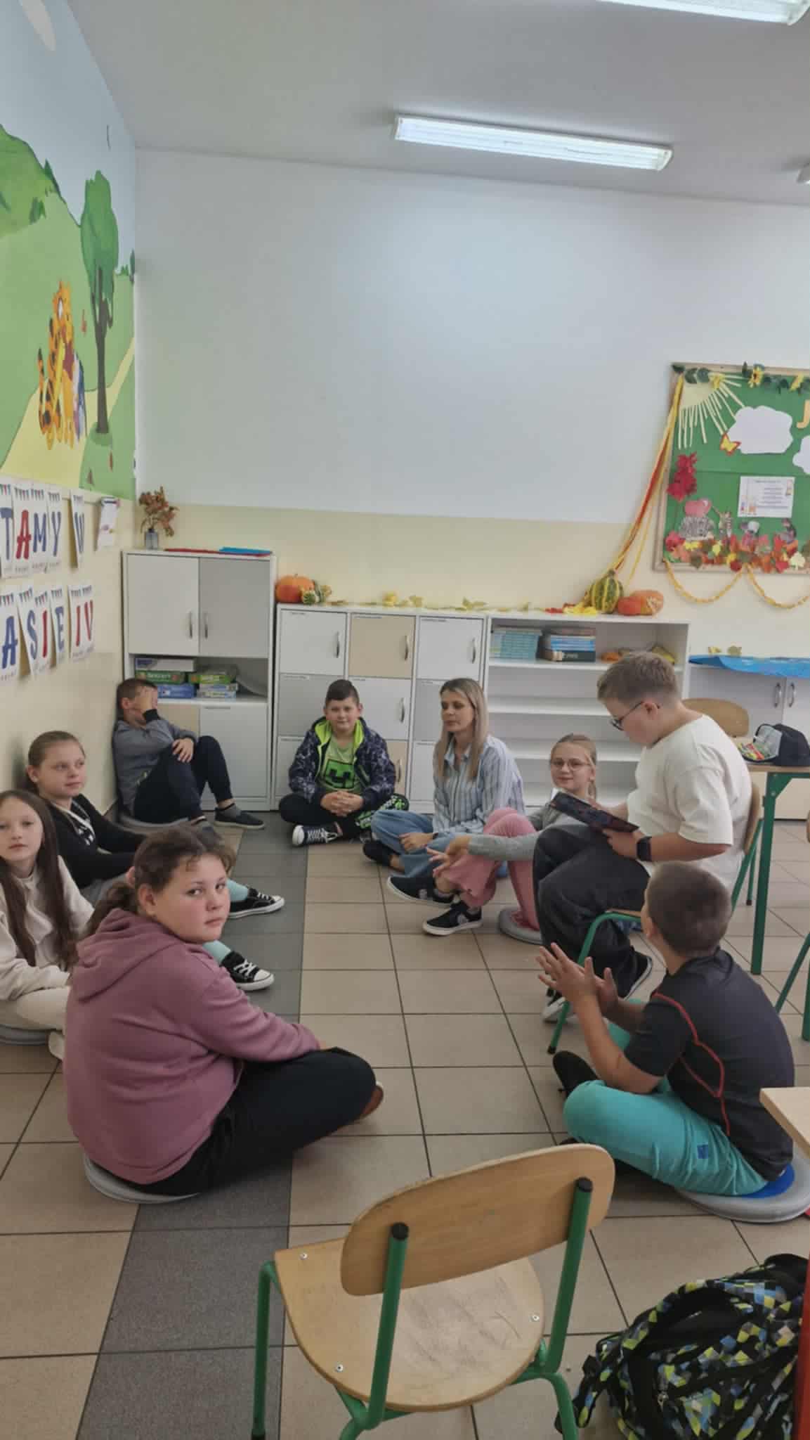Nie zabrakło również niespodzianki – pani dyrektor przeczytała wszystkim uczniom wiersz Jana Brzechwy, korzystając ze szkolnego radiowęzła. Dzięki temu cała społeczność szkolna mogła jednocześnie uczestniczyć w tym wydarzeniu, a głos poety dotarł do każdej klasy.