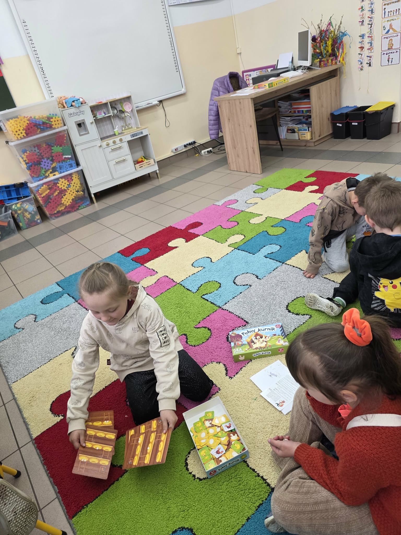 Dzieci brały udział w grach planszowych, podczas których uczyły się współpracy, cierpliwości oraz kontroli emocji związanych z rywalizacją.